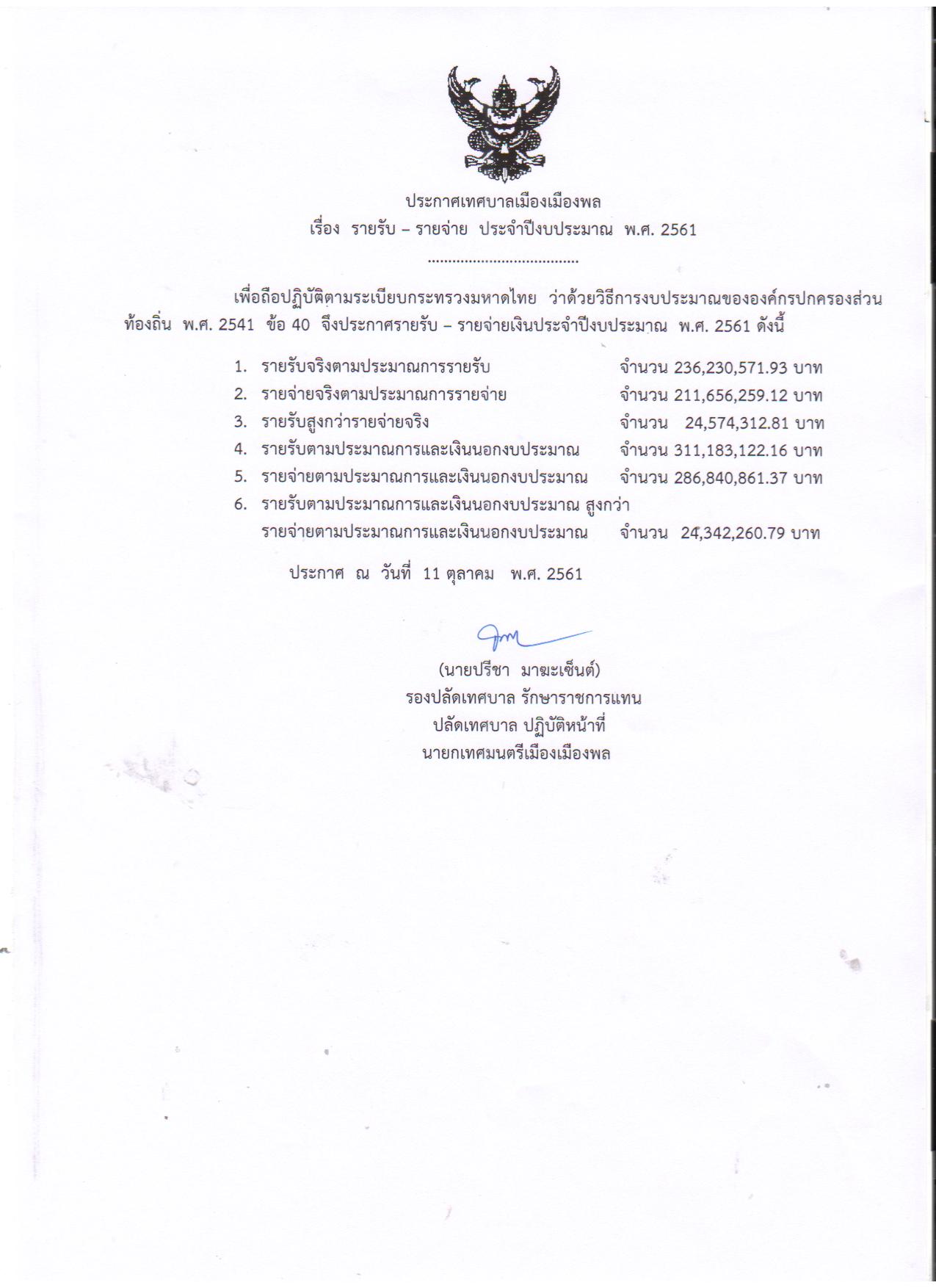 รายงานการรับจ่ายเงิน ประจำปีงบประมาณ พ.ศ. 2562